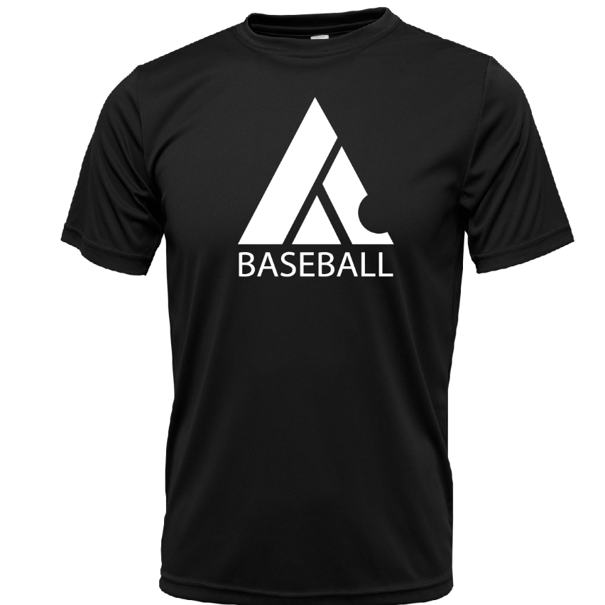 print: Black shirt with White AAC traditiional Baseball Logo on front